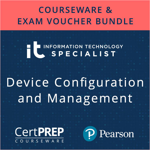The IT Specialist Device Configuration and Management exam voucher allows you to validate your new skills and take the next step on your journey to becoming a tech professional.